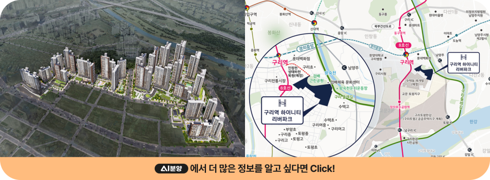 경기도 구리시 수택동 496-6번지 일원에 들어서는 구리역 하이니티 리버파크는 총 3,022세대(일반분양 1,530세대)가 공급되며,의 메가 단지로,